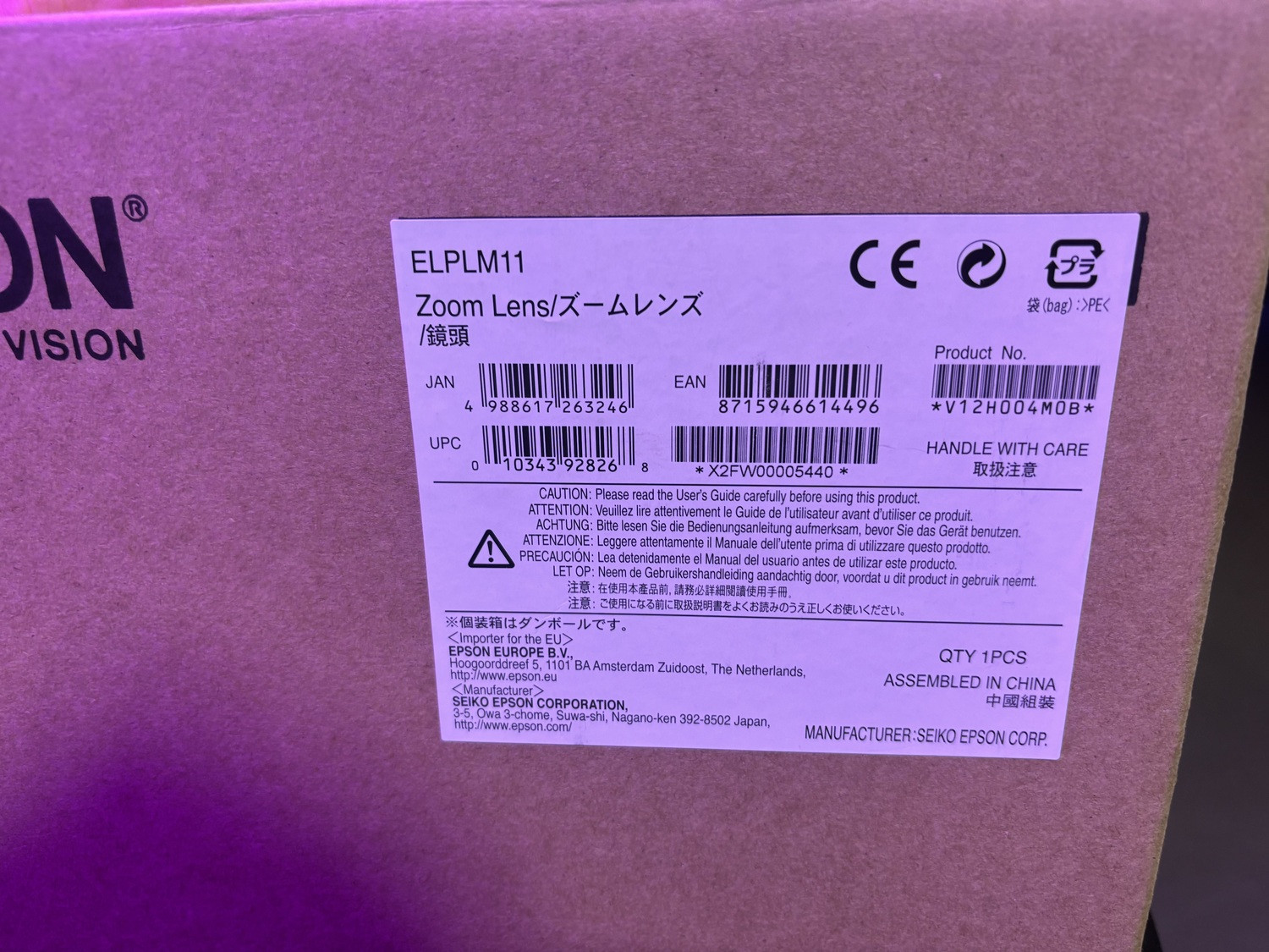 Epson ELPLM11 – Objectif zoom pro NEUF (ouvert)